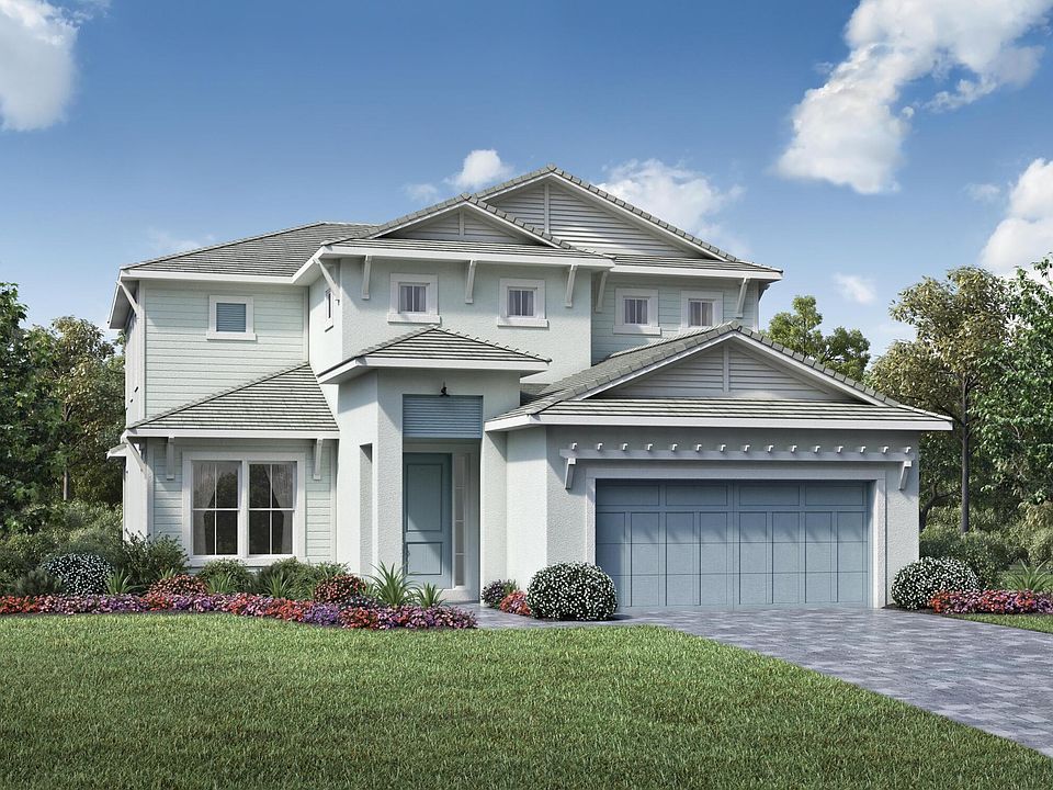 Closing cost incentive of $7,500 if buyer uses Toll Brothers Mortgage. House is under construction and will be completed approximately Spring 2023. Pictures are not of actual house. The Torrance's stunning two-story covered entry and foyer reveal a beautiful formal dining room and spacious office, with views to the expansive great room and the expansive covered lanai. The well-designed gourmet kitchen is adjacent to a bright casual dining area, and is complete with a large center island with breakfast bar. The lovely second floor primary bedroom suite is enhanced by an large walk-in closet and deluxe primary bath with dual-sinks, large soaking tub, separate shower, linen storage, and private water closet. The second floor features a spacious loft and secondary bedrooms and bath.