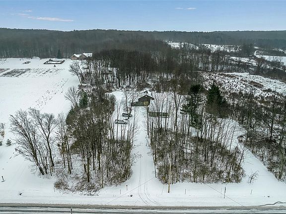 Check out this completely renovated and remodeled 3 BR 2 FB home on 3.3 acres tucked back off the road. Everything new since 2016. New flooring, plumbing, insulation, electric, doors, windows, kitchen and baths. Metal roof 2019. Beautiful kitchen features handmade Amish hickory cabinets and cathedral ceilings. No detail was spared, down to the custom live edge wood breakfast bar. Open concept floor plan, with formal dining space and sliding glass door to backyard. Cozy living room with recessed lighting leads to first floor master suite with brand new full bath, walk in closet and sliding barn door. 2 BR and new full bath upstairs with large closets. 1st flr laundry & full dry basement with walkout to backyard. Includes a 2 story barn/garage/workshop (30x40) w concrete floor. 17 x 27 workshop with woodstove hookup, exterior bays for equipment storage & stairs to 2nd story provide ample storage space. 3rd floor cupola has retractable roof for stargazing. Very private, no visible neighbors, great views, perfect for a small hobby farm or recreation.