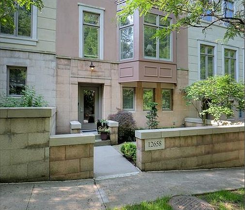 Spectacular Villa Carabelli 4 level townhome with elevator to all 4 levels. A large rounded entrance greats you with access to the elevator and the attached oversize two car garage plus a den with built-in shelves and a full bath. The light filled second level features an open concept living room with bay window, gas fireplace, built-in shelves, floor to ceiling windows and dining room plus a gourmet kitchen. The white kitchen has a lovely breakfast room with built-in buffet, center quartz counter top island, stainless appliances, solid surface counter tops, wall of windows and pantry closet. Highlights of the third level include a fabulous master bedroom suite with a luxurious bath featuring double sinks, a spa tub, glass enclosed walk-in shower and oversize walk-in closet. An additional bedroom with private bath and a full laundry room with sink complete this level. The special top level contains a family room and both front and back decks with tremendous views of the city. Located in a gated community in the heart of Little Italy, within walking distance to many quaint restaurants and shops and University Circle, CASE and University Hospitals. A rare gem, not to be missed!
