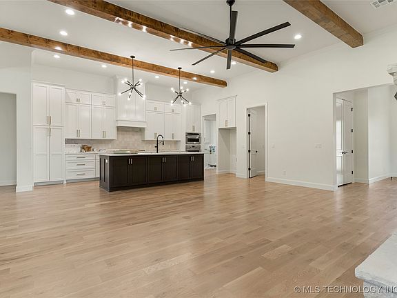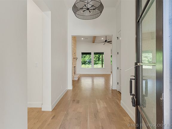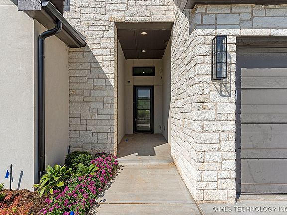 GREENBELT LOT SINGLE STORY by Tulsa's premier builder in the gated community of Bixby's Estates at the River V! This floor plan is diverse : could be. 4bed or 3bed with a flex area, separate pocket office, 3 full bathrooms, butler's pantry with additional full size refrigerator, primary suite is dreamy : vaulted with hardwood floors, tiled shower with separate soaker tub, connects to seasonal closet and then into the laundry room. Dropzone off of the garage entry. Picturesque windows, stone fireplace, quartz tops, spray foam insulation on exterior walls, tankless hot water, full gutters, and one year builder warranty provided.