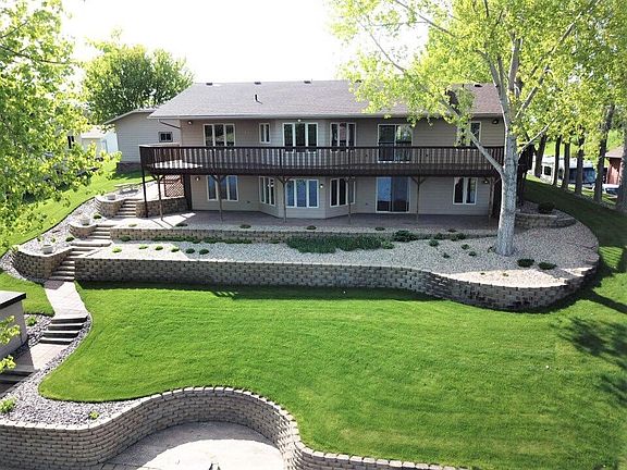 From the moment you walk through the front door you will feel like your on vacation with panoramic views of the lake! This home offers an open floor with numerous updates throughout including bathrooms, flooring, paint and more. You will love how the home opens to the extra large upper deck perfect for entertaining and family fun. The walk out lower level leads to a spacious covered paver patio offering more entertaining space and plenty of shad on those hot sunny days. The yard is beautifully landscaped with full sprinkler system and a tiered lakeside patio with a fire pit is the perfect spot to enjoy lake life. There is no shortage of outdoor storage with the boat house and additional 2 stall garage.