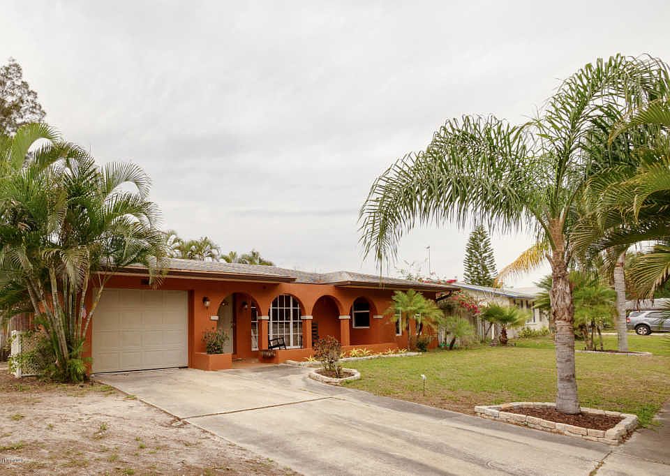 Come fall in love! Your search ends here! This perfect starter home is nestled quietly on a lightly traveled street in NE Palm Bay. only a few steps away from the docks at Goode Park. Bring your boats and your fishing poles! Quietly sits on a quarter of an acre, this lot has privacy landscaping surrounding the entire backyard. Room to make this backyard your own. Exterior shed for workshopping or storage. Irrigation system. The interior is convenient for hosting your family and friends for a get. together. Enjoy the lush Florida landscaping (Bug-free) relaxing in the screened in porch. This come comes with easy-to-install Hurricane Shutters.Needs new roof and seller willing to replace with accepted offer