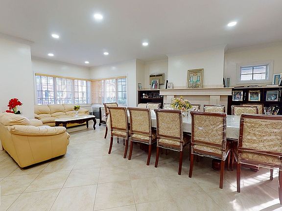Enjoy tranquil living on this desirable block right in the Prime Midwood Area! This beauty is a fully detached house with an oversized front porch and offers more than 2600 sqft of living space. Upon entry, you are greeted with a gracious open concept of the living room and dining room that's drenched with sunlight coming from all surrounding windows. You have recessed lighting and high ceilings throughout with coffered ceilings in the dining room and a powder room. The Kosher kitchen is outfitted with hardwood cabinets, granite countertops and a dinette area. Walk up the stairs to the 2nd level where you have 3 generous size bedrooms with plenty of custom closets in each and a full remodeled bathroom. 3rd level offers another bedroom and two additional rooms that can be used as two bedrooms and a bathroom as well. The finished basement includes high ceilings, tiled floors, open layout recreational room, pesach kitchen and a remodeled bathroom with a shower. Property also features a very wide driveway that fits up to 6 cars and a private gated backyard too.