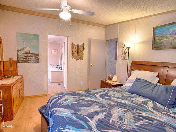 Affordable Home in Pinetop. New 30-year roof on a 3bd/2ba mobile with a partially fenced backyard. This would be a great summer getaway or a year around home. Recently re-leveled and vapor barrier resealed. Heat pump with auxiliary heat strips provides a/c for a hot summer day and heat strips keep the heat pump working efficiently in the cold winter. Workshop has electricity. W/D and furnishings available outside escrow. Owner occupied but easy to show. Please use showing time. No showings before 11 a.m. Be careful that the cat doesn't sneak out.