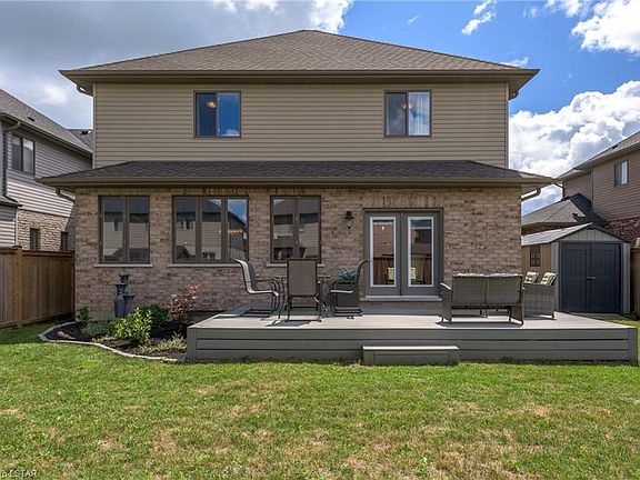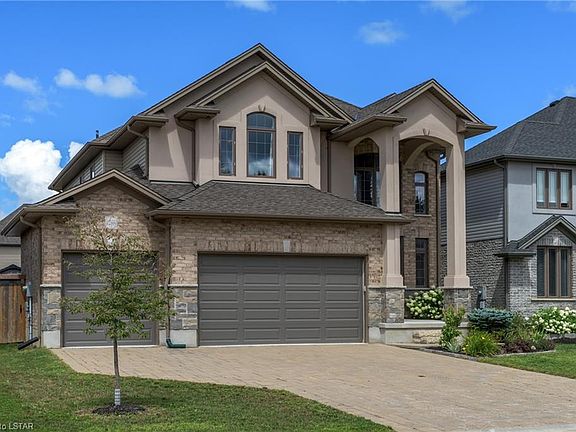 This turn key, former model has it all: 4+1 bedrooms, triple car garage and fully finished lower level in desirable North London. Impressive 2 storey arched covered entry ushers you inside to a grand 2 storey foyer with two double front hall closets and open staircase with wrought iron spindles. Stunning open concept living encompasses eat-in kitchen boasting ceiling height cabinetry, walk-in pantry, tile backsplash, valence lighting, granite surfaces and large island. Living area with gas fireplace and stone surround feature wall. Dining room boasts coffered ceiling. Rich hardwood floors and crown moulding throughout. Convenient main floor laundry. Generous sized master suite with vaulted ceiling, walk-in closet and 5 piece ensuite with granite surfaces, tiled walk-in shower and soaker tub. 3 More spacious bedrooms and another 5 piece washroom, Expansive lower level adds large windows, rec room, media room with projector screen and wet bar. Also offers 5th bedroom, additional bathroom, office and cold room. Pool sized lot with fully fenced backyard, large composite deck and 2 sheds.