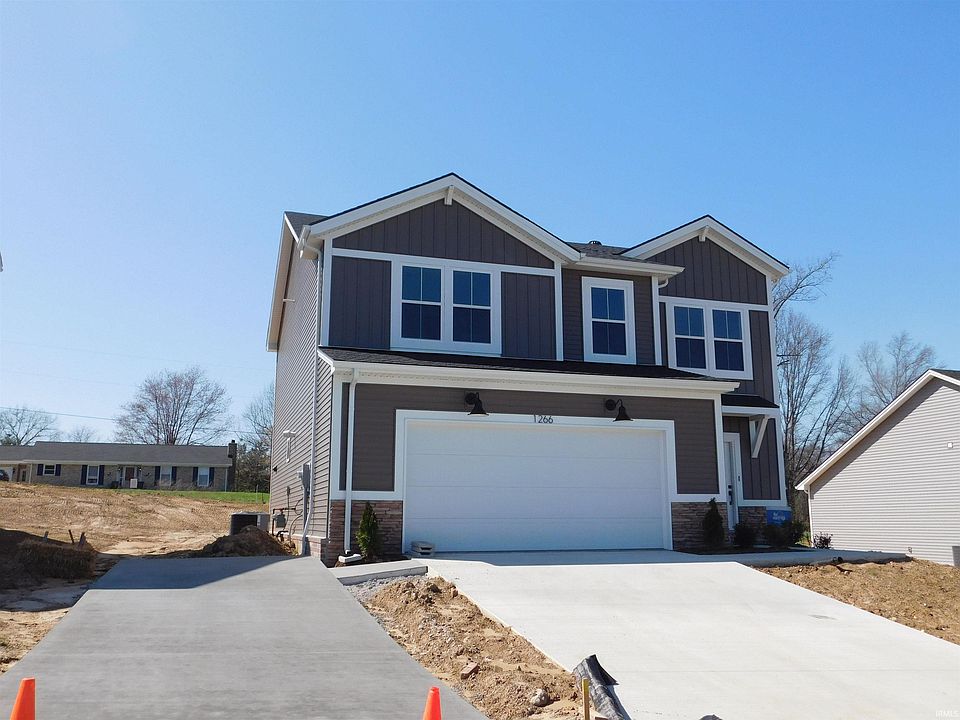 A Stylish new Home awaits you in Rural Warrick County. Great Curb appeal and an extra wide drive to accommodate a 3rd vehicle. The Cumberland Farm house is the perfect size home. The Beauty of wood is achieved with Durable Arrington Luxury Vinyl Plank flooring on main level. The large GREAT ROOM bursts with natural light and opens to the dining & kitchen areas. This Kitchen offers a generous Island, granite counters, Burlap stained cabinetry, white Herringbone tile backsplash, and Stainless Steel appliances with a gas range. A Transom Window is installed over the sliding glass door to you patio. Laundry room is located just off the kitchen for your convenience. The upper level boasts a LOFT AREA, 4 Bedrooms and 2 full Baths.