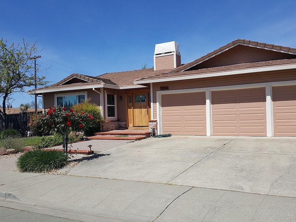 This beautiful home has 4 bedrooms and 2 bathes with 3 car garages with open floor plan. Features vaulted ceiling, spacious living rm/dining rm; eat-in kitchen/family rm combo w/ fireplace. It has newly remodeled kitchen with granite counter top, newer flat surface cook top, new dish washer and newer refrigerator, new bamboo floor throughout the house, new painting inside and outside, and new landscape. Washer and dryer are included. It is on a corner lot (8000+ sq ft) in very safe and quiet neighborhood. Security deposit is $3600. No section 8 please. No pets! Credit will be checked. Income verification is required. $29 non-refundable application fee. Household income has to be 3 times of rent or more 12 months