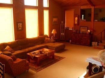 Looking for a peaceful property to call home? This wonderful home has it all! 3 large bedrooms which includes a master retreat with raised seating area and large stone fireplace, 2 spacious bathrooms, huge kitchen with large island and stainless steel appliances. The sunken living room is to die for: huge yet cozy, a stone fireplace that goes all the way up to the cedar lined, vaulted ceilings, and cathedral windows. This home also has a pool, large detached garage with a bathroom, barn, horse or barn animal area, and over two acres