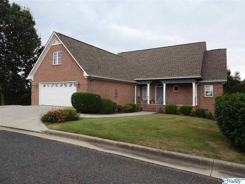First time ever on the market! Full brick home with winter lake view located on the 18th tee box of Gunter's Landing golf course. This well maintained home features a vaulted great room with open floor plan, gas log fireplace, study, hardwood & tiled floors, ceiling fans, built-ins, whirlpool tub, laundry room, kitchen appliances, gas water heater, gas heat, newer dimensional roof, multi-level decks, sprinkler system, security system, covered front porch, 2 car garage, plenty of storage space, unfinished 20x37 daylight basement area, and much more! Convenient location, only minutes to Lake Guntersville public boat launch and approx. 35 minutes to Hampton Cove/Huntsville area.