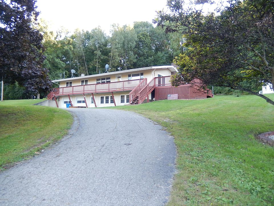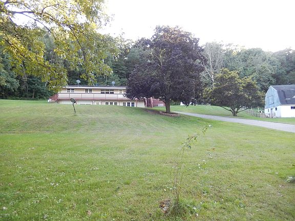 Welcome to the beautiful home on the hill. 3 bedrooms with bamboo flooring, 2 full bath home, sitting on 4.67 acres with a large barn, finished basement, large family room with a full bath. The main floor also consists of a massive living room with vaulted ceilings that just need the finishing touches, dining room and kitchen which makes it the perfect home for entertaining. Two tier deck for cookouts or just to watch the wildlife which is abundant. Don't miss out of this one, call today foryour personal showing