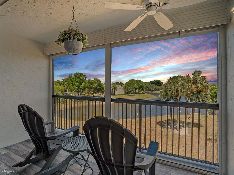 Spacious 3 bedroom 2 bathroom Corner lake view condo in desirable Clearwater of Meadowlakes. Enjoy gorgeous long lake views from your 3rd floor private screened balcony. Beautiful neutral color vinyl and tile flooring throughout, No carpet here! Both bathrooms are fully renovated with high-end finishes. Primary suite has a large walk-in closet. 3rd bedroom can be used as a flex space or private bedroom. Full size washer & dryer. Accordion and roll down hurricane shutters. Quiet family-friendly all ages gated community. Community heated pool, new fitness center, new elevator, and renovated clubhouse. 40 yr inspection has been completed. Excellent location near great shopping, restaurants, groceries, highways, and only less than 10 minutes to the Beach.