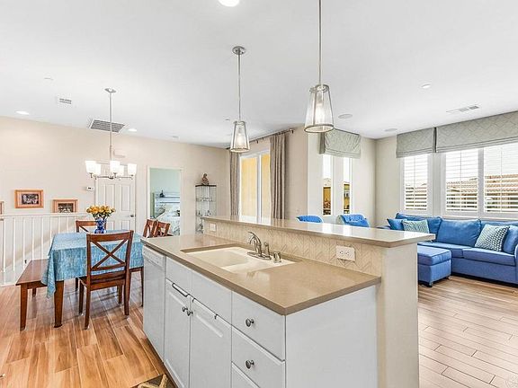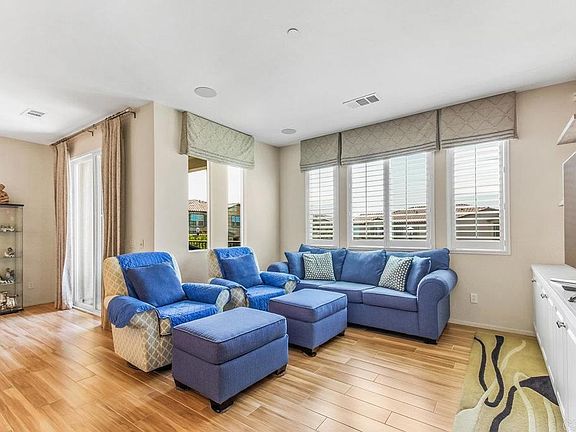 Welcome Home! Great opportunity to secure your wonderful new home now. Desirable split-bedroom floor plan that lives like a single-level home. Bright and sunny south-facing 2 bedrooms, 2 baths, sunny airy balcony, direct-entry garage, 2 off-street parking spaces (garage and reserved space). Living areas are all on one upper level with privacy and lovely vista park views. This former model home comes with beautiful remodeled and upgraded features, includes quartz counters, full backsplash, plantation shutters, dual-paned windows, wood look plank tile flooring, tankless water heater, storage systems, and walk-in closet. Home is owner-occupied and exudes pride of ownership and love, now ready for lucky new homeowners to enjoy. The Parc Place townhome community is a newer development, built in 2017, within the amazing Village of Montecito master community with access to a fabulous community center that includes an amazing clubhouse, smart swimming pool, tennis courts, basketball courts, cool fitness gym with views, BBQ areas and more. Multiple nearby parks and the new Sonia Sotomayor Elementary School adds to this exciting growing community in Otay Ranch.