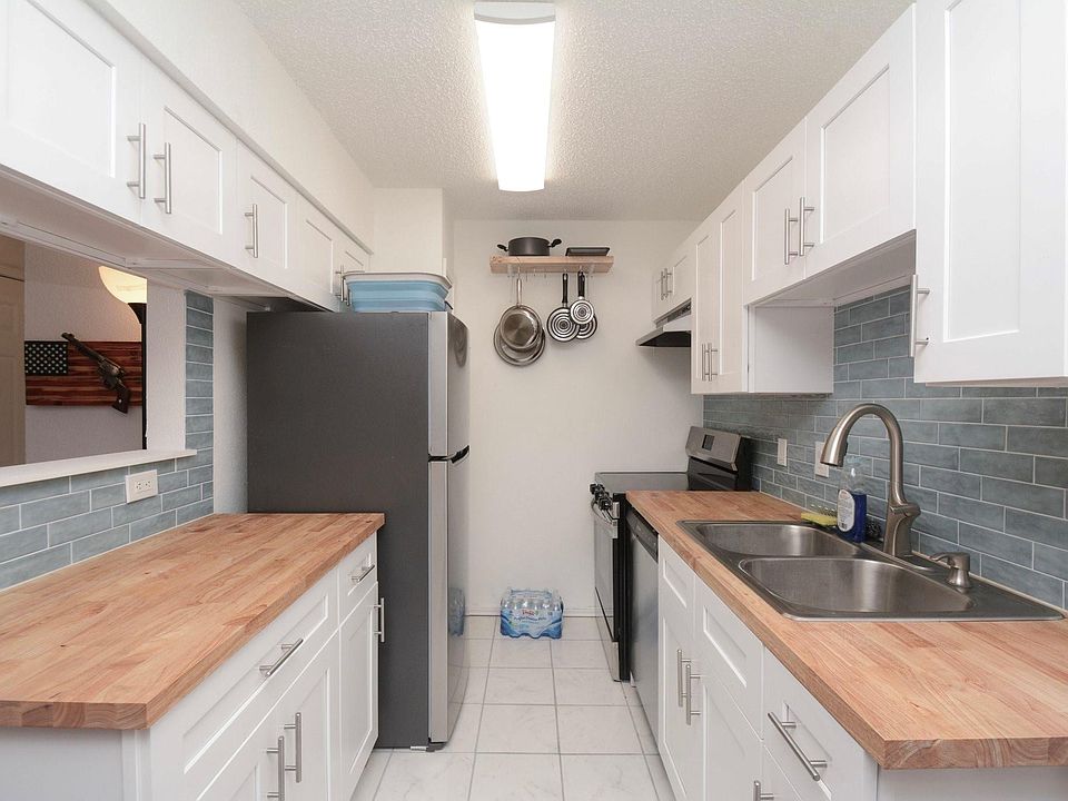 Private balconySerene surroundingsButcher block countertopsHuge walk-in closetNew ceiling fansWhite cabinetry