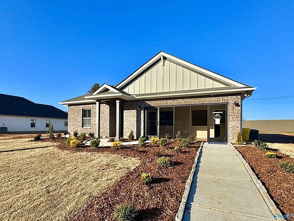 The new Charle II plan in Town Mill with quick access to I-65, I-565, Hwy 72, Mazda Toyota Manufacturing, Amazon Fulfillment Center, Redstone Arsenal and Downtown Huntsville! The living room, kitchen and café are situated among a convenient open floorplan that offers seamless transition between spaces on a single level, while a covered porch is ideal for entertaining guests. A versatile flex space can be used as a bonus room for the kids or a home office. Complete separation by a hallway between the Primary Suite and 3 secondary bedrooms provides more privacy for all your family members. USDA eligible. Photos of a similar model. Finishes may vary. Est March completion.