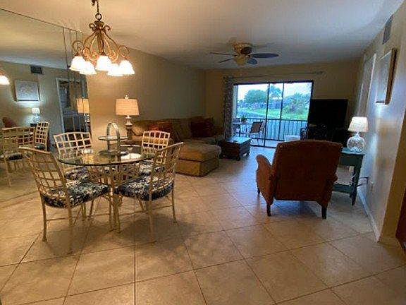 This is a seasonal rental on a month to month rental with the option for multiple months April - December. This 1st floor corner condo is a perfect getaway with lots of extras. The condo is located in Kelly Greens Golf & Country Club, a gated community with a meticulous par 72 championship golf course, with a full practice range, putting green and short game practice area. Kelly Greens also includes tennis courts, pools, hot tubs, a full service restaurant and fitness center, along with 5 miles of private, lighted sidewalks and streets for walking, jogging or biking. A full time activities director fills the calendar with fun group and individual activities. See our Notes under the 'RATES Section' about the (optional) Full Membership Transfer Fee of $400 to play Golf and a 'Dining-Only' (optional) fee if you choose. Rates for these 2 options have been changed by Kelly Greens - effective 6/1/2021 to 12/31/2021. This 2 bedroom, 2 bathroom condo with a full kitchen and laundry boasts a spectacular water view. Enjoy sunsets on the private lanai. No worries about golfers passing by your condo as you relax, as this condo is located with a view of the 13th green. This first floor corner unit includes free WIFI and cable tv and covered parking. Our outside storage closet contains beach chairs, beach tent, bicycles, beach cart, beach games and coolers for your enjoyment. 2022 Monthly Rates: December - $3500 January-March - Unavailable April - $3500 May - $3000 June - $3000 July - $2500 August - $2500 September -$3000 October - $3000 November - $3500 December - $3500 Fees: Gate Transponder Fee: $10 Cleaning Fee: $200 Golf Transfer Fee: $400 Tax Rate: 11.5% Notes: Security deposit of $1000 due upon signing of contract. This is fully refundable if reservation is cancelled within 30 days of contract signing and after departure providing condo is in good order. Rental Tax rate of 11.5% of all charges is responsibility of the renter. Cleaning fee of $200 is due upon signing of contract. Gate Transponder Fee $10 per vehicle NOTES ABOUT ADDITIONAL FEES FOR KELLY GREENS GOLF/COUNTRY CLUB: *Kelly Greens offers an optional "Full Membership Transfer Fee" of $400 which includes golf and the use of all facilities, restaurant, bar, grill, snack bar and fitness center. This is an optional one-time fee for a 30 to 90 day reservation (1-3 months). Kelly Greens also offers an optional "Dining Only" Transfer Fee for $150 during the entire length of your reservation. These prices are set and managed by Kelly Greens. Golf transfer is from May 1st to December 31st of each year. When playing golf, golf cart is an additional fee and includes a warm-up bucket of range balls prior to round. CHECK IN: 3:00PM CHECK OUT: 10:00AM This is a NON-SMOKING unit anywhere in the condo or lanai Sorry No pets allowed.