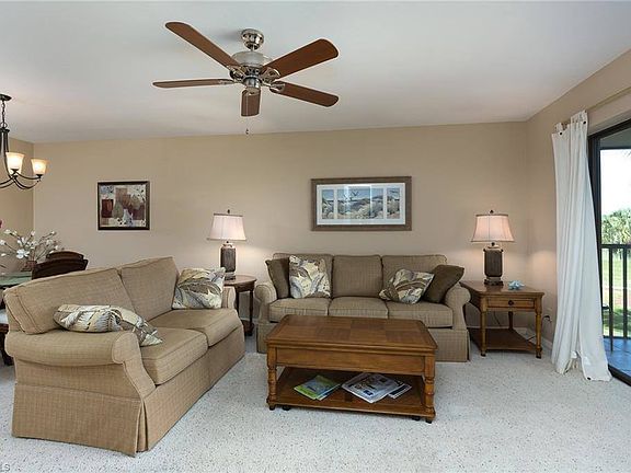 Enjoy the stunning views and sunsets from this 2nd floor condominium! The lanai looks out over a long lake, golf course and single family homes with no other condos obstructing the view. Laminate flooring has been installed in hallways, dining and living rooms in 2018, washer and dryer replaced in 2019. The A/C and hot water heater were both replaced in 2015, all the furniture has been purchased since 2013. Kelly Greens Golf and Country Club is a bundled, fiscally sound community with Har-Tru tennis courts, fitness center, fine dining restaurant and full bar with a very friendly and accommodating staff. Kelly Greens is extremely convenient to Sanibel Island and Ft. Myers beaches as well as many restaurants and places to shop. This unit is a must see!