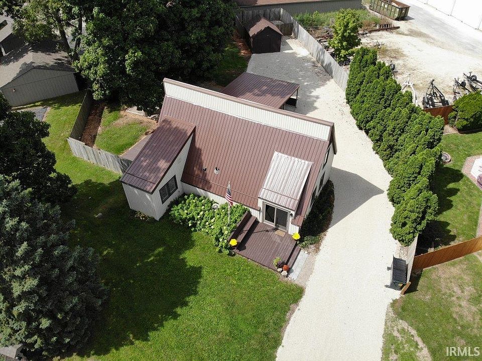Close to town. Large yard. Beautifully freshly painted entire interior. New flooring throughout. Kitchen/Dining/Great/Living Room open concept.Upstairs Loft can be used as bedroom or extra living space. Close to the lake, rent a spot from the marina a minute from your house if you want access to the great waters of Lake Wawasee. Carefree exterior with metal roof, vinyl siding. Wood fencing around entire back yard. Open deck, open patio, covered deck by carport. Move in ready!