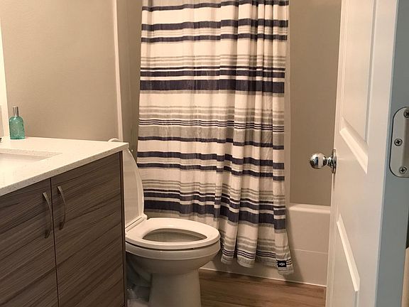 Brand new 4 bedroom home- finished in late 2020. Comes with all appliances and washer/dryer. Stylish quartz countertops, wood laminate floors, stainless steel brand-new fridge, sink, microwave and stove. Has 3 full bathrooms and master bedroom has ensuite large bathroom with large shower. Carpets upstairs and hard wood flooring everywhere else. It is an end home on a cul-de-sac with the botanical garden off the side of the house- beautiful view to the garden and quite private. There is just a very small back yard. Room to put some planted things and park a few bikes. The rent does not includes garbage and water. Electricity costs about $85/mo so far and will need to be transferred in your name. Internet costs about $65/mo as well, and is Xfinity/Comast and will also need to be put in your name. There is a small dining table and 4 chairs, one queen size bed there and one bunk bed. They can stay or go. Price is the same. No smoking inside. There is an HOA and all rules must be followed. This place can NOT be sub-leased and any violations of this and other rules will result in a quick eviction by the HOA. The neighbors are all friendly and have all just moved in within the last year- there are many families on the street and lots of kids.