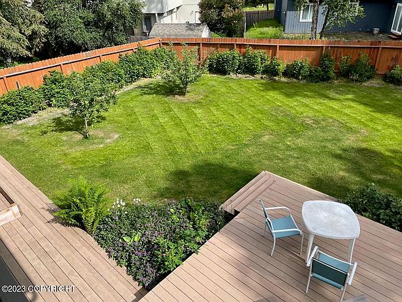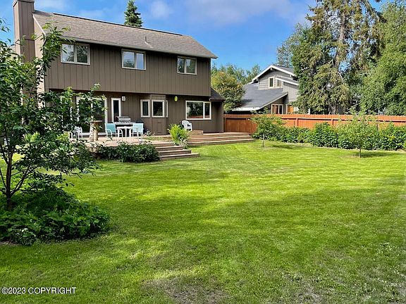 This 3 BR and 2.5 BA home is nestled a quiet and well established Oceanview neighborhood close to parks, trails, scenic view areas and restaurants that South Anchorage has to offer. Vaulted ceiling, hardwood floors, large master bedroom with full bath and walk-in closet, office, open concept kitchen/family room with lots of cabinets and a pantry, living room and dining room on the main floor.Sunroom is newly remodeled with large modern windows. Recent upgrades include new interior and exterior doors and windows, fire place insert in the family room, lighting, exterior and interior painting. Huge trex deck in the back, mature cherry and apple trees, lots of berries, and perennial flowers-all makes it ideal for gardening, barbecuing and entertainment.