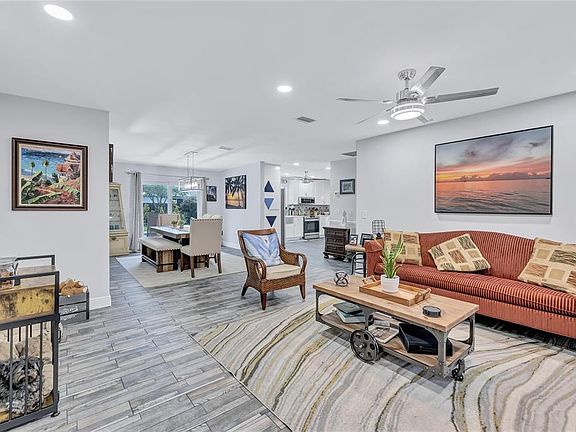 Up to $9,000 lender credit available with agreed terms!* This beautifully updated home boasts modern style and comfort, featuring a newer roof, impact windows & doors, and fully renovated kitchen and baths. The kitchen shines with stainless steel appliances, white quartz countertops, a chic backsplash, and an oversized farmhouse-style sink. Enjoy a spacious layout with two living areas and a dining room, ideal for entertaining. The insulated, air-conditioned two-car garage doubles as a gym or game room. Outside, a HUGE fenced yard and oversized pool await! Additional perks include recessed lighting, no popcorn ceilings, a water softener, and a tankless water heater—all in a no-HOA community with top-rated schools.