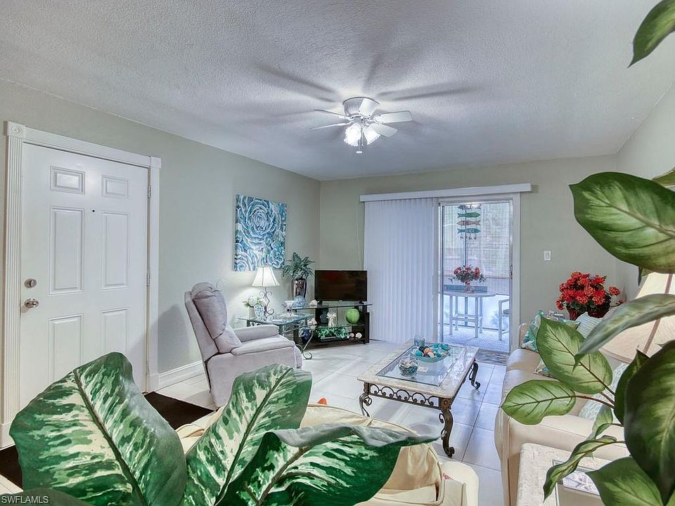 This clean and well maintained First Floor End Unit Condo comes with a 1 year Home Warranty included and is going to give you a feeling of peace, comfort, and relaxation! Freshly painted throughout and is all Tile with No Carpet! NEW A/C system installed in March and has a awesome Tank-less water heater that will give you endless hot water! It comes with Mirrored closet doors and extra shelving inside for more storage, also there is extra storage room in the laundry room! All interior doors are 6 panel doors and the windows are only 4 years old. Lots of great people live here and a real fun community with events for everyone to participate in and Low HOA fees to top it off! Conveniently located near Bell Tower for shopping, restaurants and entertainment, also close to the airport, Sanibel or Fort Myers beach. Great place to live if you are a seasonal visitor or a full time resident!