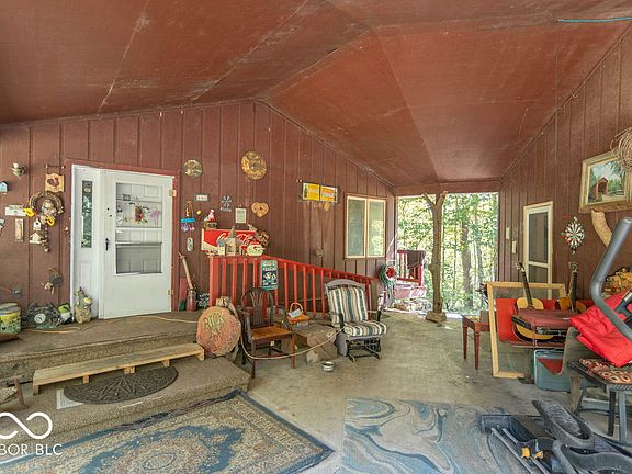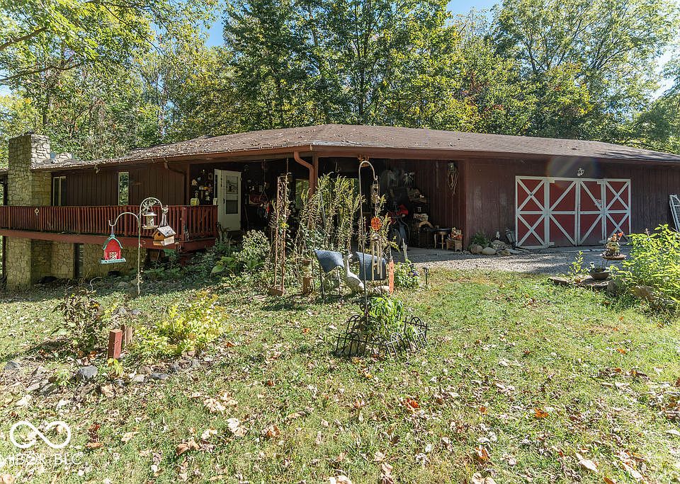 Back on the market due to buyer financing falling through. Here is your opportunity to own a slice of paradise. This rustic home has so much to offer. With some elbow grease and love you can make your vision come to life. Open floor plan on main level with wooded views in every direction. The 800 SF wrap around deck needs some love and work but offers shelter in weather while enjoying nature all around. The fireplace will offer cozy winter evenings. Primary bedroom on the main level. The kitchen has wooded views and lots of counter top space. The walk out basement is complete with 2 bedrooms, full bath, and a family room with a 2nd fireplace. This home has so much to offer. The over sized 3 car garage will store 2 cars and lawn equipment. The garage is attached to the home with a breezeway that is spacious and so welcoming. This slice of paradise is complete with 5 acres to use for recreation, have your firepit and watch nature with beautiful sunsets. It feels remote but you are 5 minutes from town, with easy access to Indy or Bloomington. This is a one of a kind opportunity! Make your dreams come true at this hidden paradise.