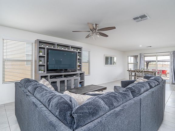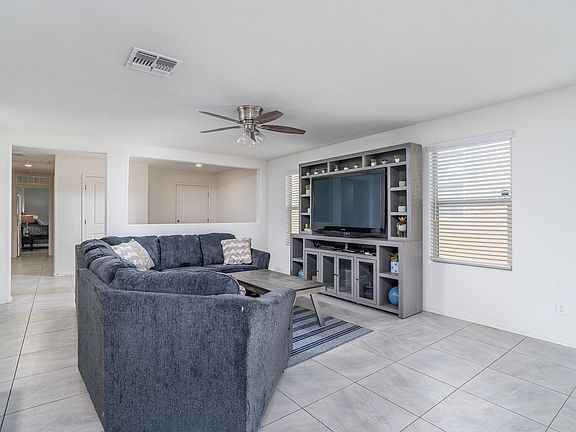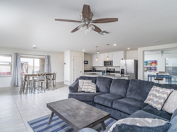 This almost-new, nicely upgraded home sits on a premium lot backing a greenbelt & offers 3 bedrooms + den & 2 baths in 1859 SqFt with an open great room floor plan & split bedrooms. The kitchen features upgraded 42'' Timberlake Tahoe cabinets, Silestone counters, Kohler undermount single basin stainless steel sink, stainless appliances, pantry, & island with breakfast bar & pendant lighting. Just off the kitchen is an open den with tile floors, perfect for an office, school room, or playroom. Sliding doors lead out from the great room to the covered patio & low maintenance backyard with no rear neighbors. The master bedroom has a large walk-in closet & en-suite bath with dual sink vanity & tub/shower combo. 2 car garage, 2'' faux wood cordless window treatments, & much more! See today!