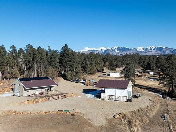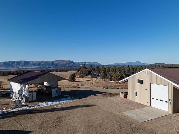 This adventurous and spacious barndominium, completed in 2021, offers the ultimate blend of rugged outdoor lifestyle and modern comfort, with plenty of room for your gear, vehicles, toys and endless fun! Spanning 2,400 square feet of thoughtfully designed living space plus 1140 square feet of heated and livable garage or game room. This property is built tough for every adventure with "Red Steel" construction and fire resistant metal siding and roofing. The 12x60’ covered patio and outdoor kitchen area makes it easy to enjoy the breathtaking surroundings year-round, whether you're hosting a cookout or stargazing after a day of exploring. Inside the main house, you'll find a smart layout featuring three large bedrooms, each with its own en-suite bath—perfect for accommodating family or friends. The main level boasts a stunning kitchen with stainless steel appliances and granite countertops, a cozy living room, a functional mudroom with powder room, and a luxurious primary suite with walk in closet. Upstairs, you'll find two more en suite bedrooms, a home office or bonus room, and a charming kitchenette for added convenience. Comfort is key, with in-floor heating throughout the house and mini-splits providing efficient AC and heat in every room. PV solar panels generate sufficient credits to offset the majority of the cost to operate. This property could be a perfect Airbnb, with no covenants restricting your creativity. Its flexible layout and prime location make it an excellent investment opportunity or a unique retreat for travelers seeking adventure. The upstairs space could also be transformed into its own apartment, adding incredible versatility. Step outside to the 720 SF covered south facing patio and find an outdoor kitchen equipped with a grill, Blackstone griddle, and refrigerator, plus overhead propane heaters for year-round enjoyment. Take in the panoramic views of Mesa Verde, the La Plata Mountains, and Sleeping Ute as you swap stories about your adventures of the day. For your toys and equipment, the barndominium features a pull-through area with 16' doors—big enough for a Class A RV with water and sewer hookups. The big heated garage space could also be a fabulous game room or bunkhouse for all your buddies. Additional storage includes a 45'x50' steel pole barn with two 40' Zircon storage containers and a log barn, currently serving as a dog kennel and chicken coop, ready to adapt to your needs. The property is equipped with a full solar system and 440 amps of power, ensuring energy efficiency and room for future expansion. A Navian tankless on demand hot water heater for instant hot water. Fully fenced and cross fenced high tensile 5 wire- 4 barb with drill stem main supports and corners and steel line posts perfect for horses, cattle, buffalo, elk, pigs, goats, sheep, donkeys, mules, and rabbits.. Located just 36 minutes from Durango, 15 minutes from Dolores, and mere moments from the San Juan National Forest, this property puts endless outdoor recreation—hiking, fishing, hunting, and more—right at your doorstep. The land itself features established grass for grazing and a long private drive, offering functionality, privacy, and stunning scenery. Whether you're chasing the dream of country living, need space for your hobbies, or want a unique retreat in the Four Corners region, this barndominium delivers. Don’t miss out—schedule your private showing today and experience the perfect balance of rugged and refined living!