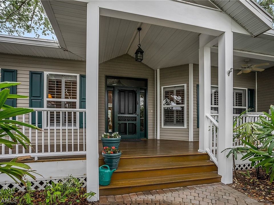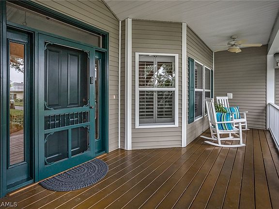Furnished and Move-In Ready 3+Den / 3 Bath POOL HOME near the beaches in Fort Myers! Situated on a roomy 0.36ac lot under a canopy of Live Oaks with lush native vegetation and brand new sod. Built in 2000 by Daniel Wayne Homes, this charming "Chino" model captures the essence of "Olde Florida Architecture" with double french doors and vaulted ceilings, designed to allow breezes to flow. Kitchen is spacious and well equipped with newer KitchenAid + Kenmore Elite SS appliances, solid wood cabinets, island cooktop, pantry and built-in desk with under-cabinet lighting. French Doors and Bay Windows outfitted with Wooden Plantation Shutters beckon you onto the Verandah with shady seating, privacy and a relaxing view of the pool + spa. Metal Roof which has been impeccably maintained to ensure its 60 year life expectancy. Home sits high and dry at 10.8 Ft Elevation and the super low $700+/- annual flood insurance policy is transferrable. New AC (2022), Water Heater (2022), Pool Motor (2022), Front Porch Decking (2023) and scheduled for new screen enclosure soon (Feb 2023). Coconut Creek is a highly sought-after, gated, pet-friendly community along McGregor Blvd. Schedule your tour today!