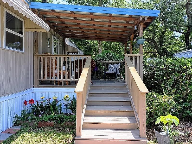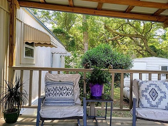 Nicely updated mobile home in a friendly 55+ community. This home features 2 bedrooms—both have en-suite bathrooms with walk-in showers. All windows have been replaced in the home. All kitchen appliances have been updated in the last 2 years. A brand new air conditioner was installed in December of 2023. The home is fully furnished. Two covered decks are located at both entrances, including a spacious deck for outdoor seating. For extra storage, there’s an 8x10 foot shed with electrical. Affordable lot rent of only $290 monthly which includes yard maintenance, water, sewer and garbage. Call today for a showing!