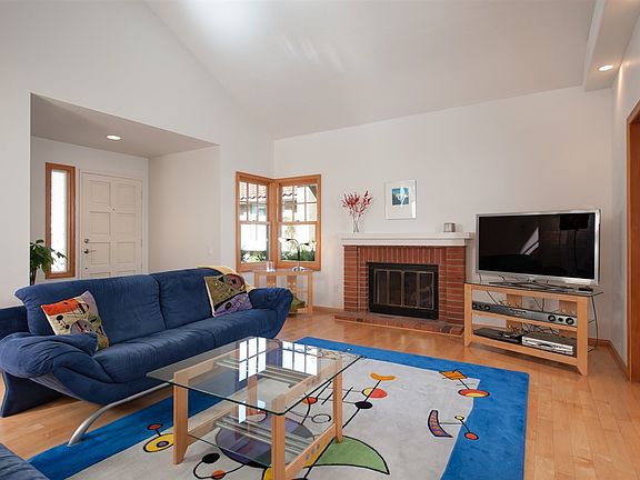 Contemporary yet still classic feel to this very bright home in fantastic location. Sleek well designed open kitchen with maple cabinets hard surface counters Dacor & Bosch appliances featuring recessed lighting. Modern living room with soaring ceilings maple hardwood floors new wood framed windows and separate family room or fourth BR with glass french doors. Baths have been renovated also. Lovely yard with mature trees and privacy within walking distance to all schools shopping dining etc.
