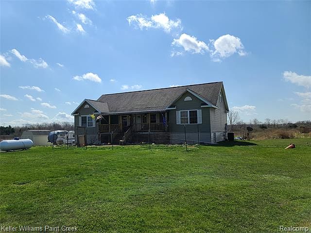 This home features a walk-out basement and a 45' x 29' barn located on 5 acres! The 2,072 sqft basement basement has 10 foot ceilings, considerably higher than most other homes. The barn has 11 foot ceilings and is fully-insulated. It has it's own 200 amp electrical panel, water heater timers and sump pump, and a furnace could easily be connected for a grow room for your home-based business or hobby! The basement and barn are perfect for a marijuana caregiver home. The acreage is perfect for an ATVs or dirt bikes. The home has a large custom front porch and a backyard deck for enjoying the property. The large kitchen features lots of counter and cabinet space, a large dining area, and the great room features lots of windows and a wood burning stove! The newer furnace is only 1 year old, and the A/C is newer within the past 3 years!