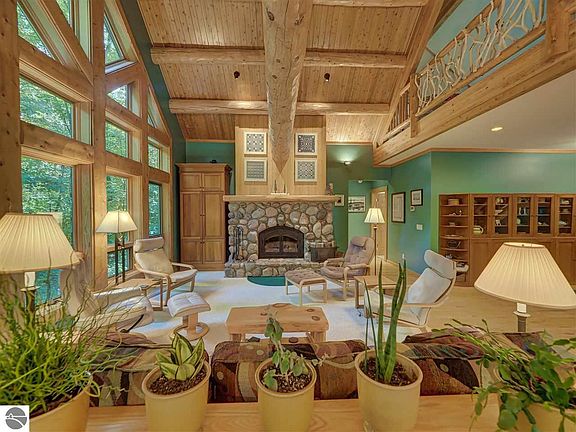 Well-built and meticulously maintained Town & Country Cedar home sits on 45 acres in the charming coastal town of Empire. This setting has it all, tranquil dark sky starry nights with plenty of room for horses, gardens, crops or whatever your homestead heart desires. 30 acres are hardwood and pine forest with a 15 acre field. Several paths throughout the property lead to the the MI Shore to Shore Trail. The trail conveniently abuts this property so you can safely hike, cross country ski or even horseback ride. Ride your bike to Esch Beach, downtown Empire, the Sleeping Bear Dunes Heritage Trail and beyond! House was built by the current owners in 2003. Main floor offers an open floor plan with stunning cathedral cedar ceiling/timbers and authentic stone fireplace. Main floor master has private ensuite bath. Second (main floor) bedroom is currently used as an office. Bright open kitchen has several newer appliances (2017), Quartz counters and tons of cabinet storage. Wall of windows shed loads of natural light. Mud room entrance is located directly off of the attached two car garage and flows directly into the kitchen. Built-in desk and powder room are also located off the mud room. Gorgeous screened in porch is a family favorite! Upper level has a loft, 2 additional bedrooms and shared full bath. Lower level can be finished, built with 9 foot ceilings! Laundry, utility sink, workout space and root seller complete the lower level. Home also has a backup generator! Backyard features a maintenance free large Trex deck and fire pit. The pole barn (42'x32') boasts two vehicle bays with 10 ft and 12 ft doors, great for RV, boat storage, and more. Barn also offers 3 animal pens, each with indoor and outdoor area; one is equipped as a chicken coop. Additional lean to shed offers room for wood storage (32'x10'). The large (deer fenced) garden has its own well and two water spigots. Established strawberries, asparagus, blueberries and raspberries! So much to see here!