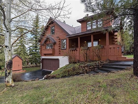 Tahoe Donner Cedar Log Mountain Home with dramatic mountain views and tons of charm on a quiet street, situated on a large corner lot in a park-like setting. Walk to the New Tahoe Donner Adventure Center with easy access to the trails of Euer Valley. Room for all, 2261 Sq. Ft. with 4 bedrooms an extra bedroom/bonus area in the garage, it even has a small cabin (sleeps 3 kids) with electricity and portable heat - named "Mini-Me". Separate bonus room upstairs with a wood burning fireplace. And much more....