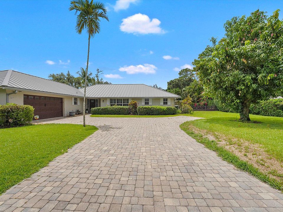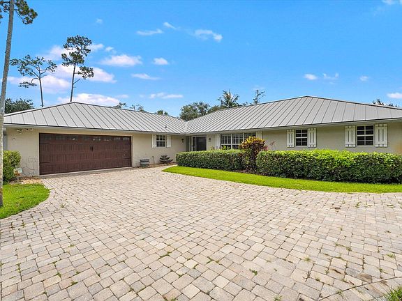 Welcome to this picturesque 3-bedroom, 3-bathroom home nestled within a serene one-acre park-like setting. This home features a standing seam metal roof -2018, new drain field -2024, impact windows and a heated, salt water pool- constructed in 2022. Stepping inside, you're welcomed into a spacious living area adorned with vaulted wood ceilings. The living room flows effortlessly into a well-appointed kitchen featuring modern appliances, custom cabinetry, ample counter space and an oversized walk in pantry.The primary bedroom is a sanctuary of comfort, featuring an en-suite bathroom with luxurious fixtures and a large walk in closet. Adjacent to the primary bedroom is an office space that provides a quiet retreat for work or study. Two additional bedrooms offer cozy retreats for family or guests, each with easy access to their own bathrooms. Towards the back of the home you will find a large den with built-in custom cabinetry.