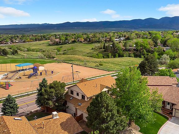 WOW. RARE CUSTOM HOME IN SMALL, PRIVATE CUL-DE-SAC. MOUNTAIN VIEWS & ACROSS FROM OPEN SPACE/PLAYGROUND & FIELD! 5 bed, 4 bath, just under 4,000 total sq. feet. Bright, open, vaulted floorplan with a lot of flexibility. MAIN FLOOR MASTER W/DECK. FINISHED WALKOUT BASEMENT. Large kitchen w/white cabinets & stainless appliances. Updated bathrooms. Popular neutral paint colors. Great combo of hardwood, tile & carpet flooring. Brand new front door. Near new roof & furnace. AC & attic fan. Wonderful bright walkout basement with huge family room, bed/flex room, 3/4 bathroom & huge storage. Oversized garage. Many flexible options for family rooms, office, hobby and bedrooms. WALK TO AWARD-WINNING DEVINNEY ELEMENTARY. Wonderful home loaded with features and prime location!