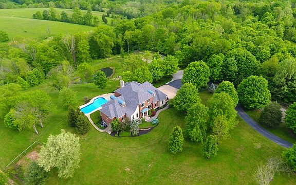 Magnificent Home Situated on 16 Beautiful Wooded Acres, Spectacular View Overlooking a Pond and Winery,4 car Garage,Custom Craftsmanship, 2 story Walnut Staircase,Built In Wood Burning Pizza Oven,Stainless Appliances and oversized Granite Island, 8 ft Tall Solid Wood doors,1st Floor Master Suite features 2 walk in closets, Private Balcony, Dbl.Vanities,Jetted tub,Huge shower, Amazing Media Room w/Fireplace, Walkout lower level to covered porch and In Ground Heated Pool,Screened porch,Lots of storage, Suspended concrete porch, In, partial wood fencing,Situated at the end of a Private Drive.