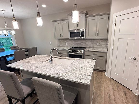 Better Than New! Finished Ranch in Bennington with Modern Style and Room to Grow Welcome to this beautifully crafted 2023 ranch-style home offering nearly 2,200 finished square feet in sought-after Bennington Schools. Located in a quiet, established neighborhood, this 3-bedroom, 3-bath home is move-in ready with a thoughtfully designed layout, finished basement, and upscale finishes throughout. Step inside to discover an open-concept main floor with soaring ceilings, oversized windows, and a stylish stone fireplace as the centerpiece. The modern kitchen features quartz countertops, a large island with bar seating, stainless steel appliances, walk-in pantry, and a seamless flow into the dining and living areas—perfect for entertaining. The primary suite includes a spacious walk-in closet and a private bath with dual vanities and a tile walk-in shower. The main floor laundry adds convenience, while the fully finished lower level provides a large rec room, 3rd bathroom. Covered patio WOW