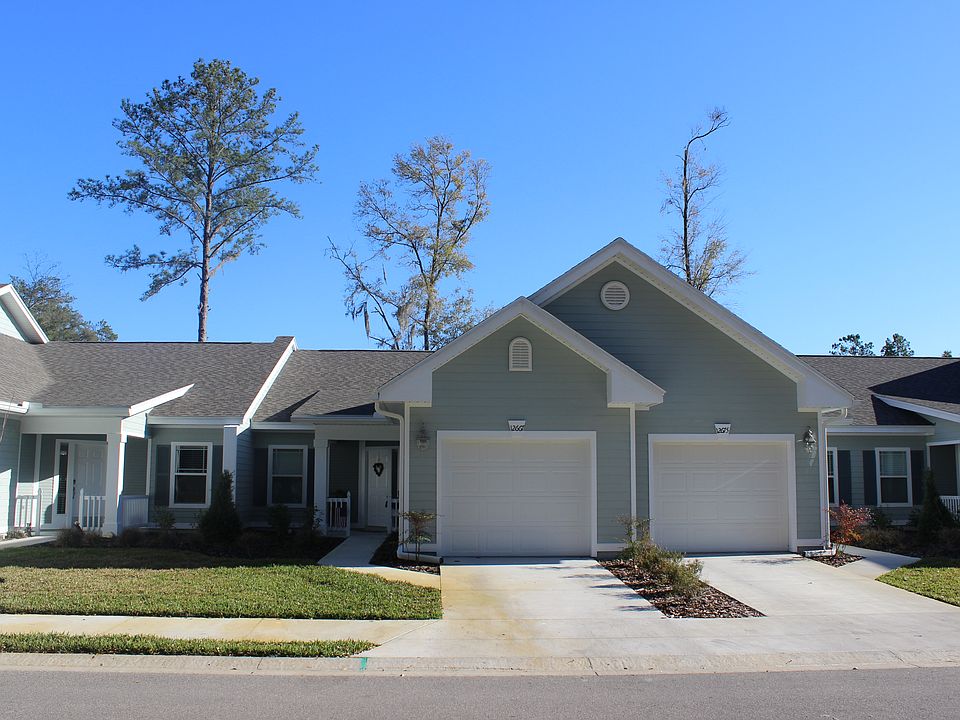 Beautiful 2 bedroom/2 bath townhome, move in ready. Totally maintenance free with pools, tennis courts and clubhouse. Pecan wood floors in dining/living room area and master bedroom, tile in kitchen and 2 full baths, carpet in second bedroom/office. Open living space with attached screen enclosed back porch. Laundry room (washer and dryer do NOT convey with sale). Plenty of kitchen cabinets and work areas, walk in closet in master bedroom. Foyer entry. Previous owner installed a radon mitigation system. All this and electric provided by Clay Electric. Water and sewer thru GRU