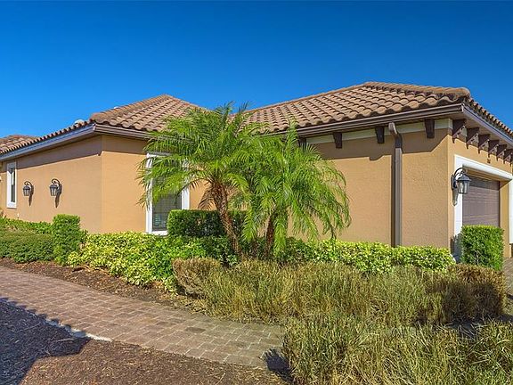 Discover an exceptional opportunity to own a single-family residence with a deeded golf membership in Esplanade Golf and Country Club. Built in 2018 and used only part of the year, this natural light-filled Roma model offers 1,685 square feet of thoughtfully designed living space. The open floor plan features eight-foot doors, tray ceilings, two spacious bedrooms, two full baths, a versatile den with glass French doors, and a separate dining area. The kitchen is designed for both style and functionality, showcasing 42-inch off-white cabinetry, quartz countertops, a subway tile backsplash, stainless steel appliances, and a breakfast bar. A pantry and ample storage add convenience. Crown moldings enhance the tray ceilings in the great room, primary suite, and dining area, creating a refined atmosphere. The primary bedroom includes a bay window, ample room for a king-size bed, a walk-in closet, and an en-suite bath with dual vanities, a private water closet, and a rimless glass shower. The guest bedroom, also able to accommodate a king bed, is located across the home, and features a walk-in closet. The den provides flexibility for a study or additional guest space. Outdoor living is effortless on the extended screened paver lanai, which is plumbed for natural gas and ideal for a future outdoor kitchen. The home’s exterior includes a paver driveway, a two-car garage with attic storage, and landscape maintenance with irrigation service included. Furnishings are available.