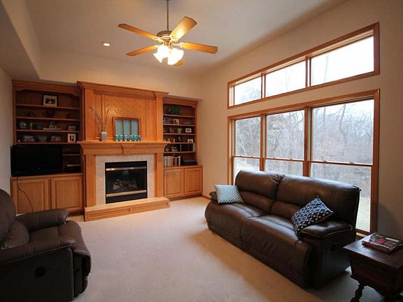 Fantastic HCS Builders custom home on 2 acres of private timber. Enjoy walking 13 acres of community woods in your own backyard. This is on a walk out lot; so the basement windows are above ground, and there is a basement sliding door with patio. Desirable open floorplan with spacious living room and kitchen areas with 9' ceilings+. Formal dining room off the grand front entryway with wood banister and 18' ceiling. Brand new, high quality finished basement has a great room, 4th bedroom & bath, and 9' ceilings. Large master suite with jacuzzi tub. Close access to highway 35; easy commute to Ames and surrounding areas. Heated garage!