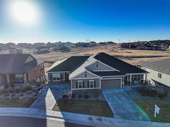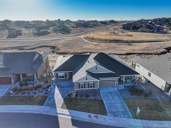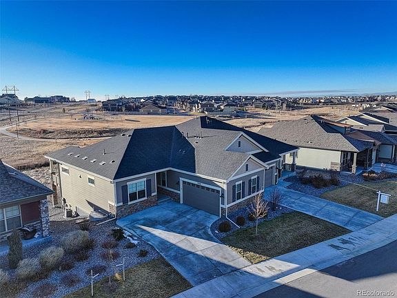 Large mostly finished walk out basement with 9 foot ceilings, two very large bedrooms with walk-in closets, huge 25' X 18' family room, and huge 288 square foot utility room with tons of space for storage and a quality/energy efficient tankless water heater. Seller added basement EV lockdown window well. Side entry, oversized and fully finished two car garage with 10 foot ceilings. Awesome area close to walking paths, Neighborhood park, green spaces, Trail Winds Rec Center, Riverdale golf Course with convenience to shopping dining and a quick drive to Denver, Boulder and DIA. This home shines and shows impeccably well and like new.