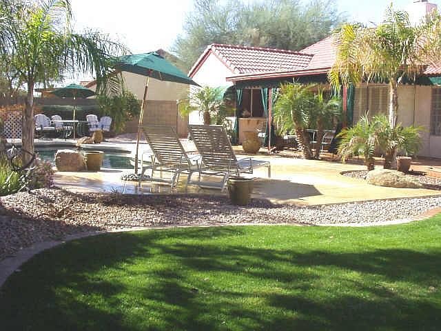 Fabulous Home & Fabulous Lot!! Kitchen opens to breakfast room w/glass doors to outside patio & the Family Room. See through Fireplace between Living Room & Family Room. *Kitchen & FR have 18' Travertine flooring. *White wood shutters. *Office/den opens to LR. Master Bdrm has exit to outside patio. **Beautiful PARK like backyard has Pebble-tec pool with Water Fall, Grassy area, Saltillo tile Covered Patio w/palm style ceiling fans. Front patio, awnings & grass. See Garage