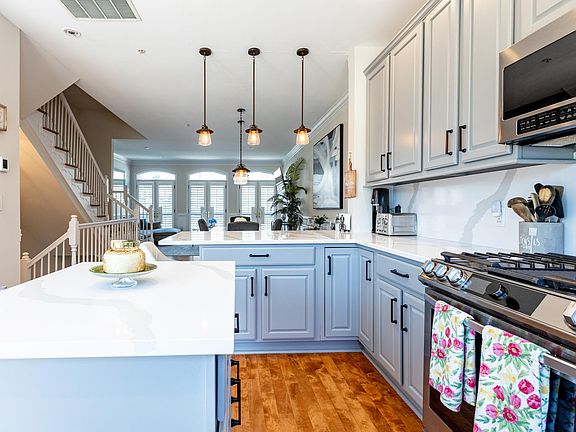 OPEN HOUSE Sunday 3/26 2-4pm OR Book a private showing today for this stunning 3 bed 3.5 bath town home with a beautifully renovated kitchen in the wonderful Harbor view Community. The whole home features beautiful bamboo floors throughout, surround sound speakers on each floor, and great spaces for entertaining. The lower level boasts a finished one car garage, a bedroom/office that walks out to a private yard, and an open entryway with lots of storage. The main level truly sparkles with a gorgeous new kitchen and spacious open floor plan. Light floods through the triple french doors into the living space accented with chair railing box molding details. Gourmet kitchen includes stainless steel appliances, gas cooking, built-in microwave, quartz counter-tops, and coffee bar. The third floor features a spacious master bedroom with en suite bath, large walk-in closet, convenient laundry closet and linen closet. The fourth floor has a third bedroom with plenty of storage, a full bath, and living space equipped with a wet bar making this a perfect place to entertain. Take the party up to the rooftop deck and keep enjoying the music from the surround sound speakers while you take in the Baltimore harbor views. Home includes 3 parking spots total. Community amenities include 24/7 security and on-demand security escorts, outdoor pool, private fitness center, private snow removal, marina, walk able restaurants, deli, and market, koi pond and landscaped grounds. Just steps from Fed Hill, the harbor side trail, and the water taxi makes this a perfect home base to explore this great area. Lease term 1-3 years