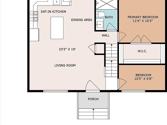 - 2 Bedrooms, Kitchen, Living Room, Bath Full, None