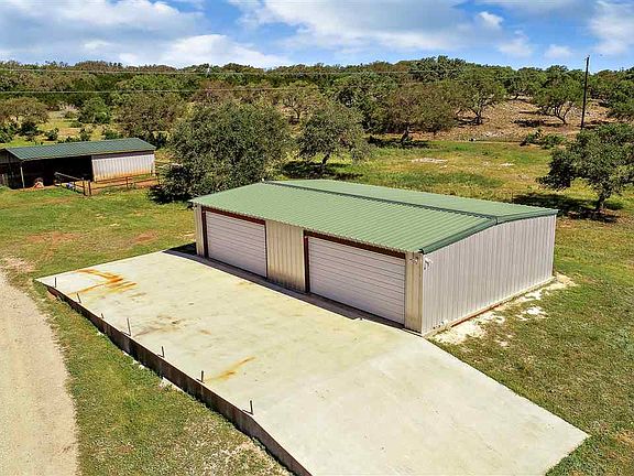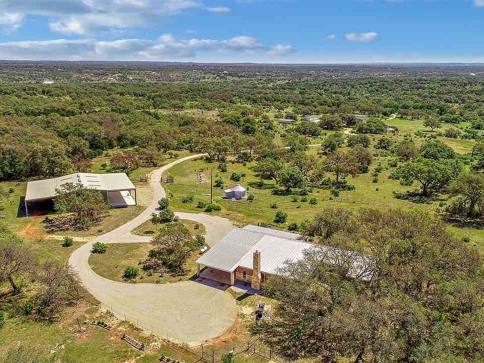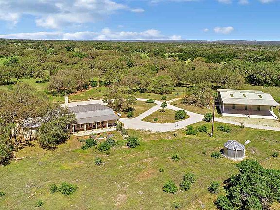 30.45 Acres with Beautiful Ranch Style Home and Guest home! The main house is 3184 sq ft, built in 2010 & expanded in 2014, with 3bed & 2 1/2 baths, over-sized 2-car carport, beautiful screened-in porch that adjoins the great room. Front porch offers fabulous 60+ mile views. The kitchen is has: Granite counters, stainless steel appliances, double wall ovens, 6 burner propane stove, Bosch dishwasher, aan oversized 60" stainless ledge sink workstation. Great room has Massive Douglas Fir beams. The guest house is a beautiful 1500 ft rock home that offers 2/1 bath (jack/jill style). Living space is upstairs & the 1st floor has 4+ car garage work area. A breathtaking backyard with large swimming pool. 3 barns on the ranch varying in size, all metal and in great shape. One is for livestock, the other 2 for storage/workshop. Also a very nice chicken coop(the chicken palace) and a RV spot. Terrain is rolling with long range views. Tree cover is great with some amazing live oaks. See amenities list & property description. An Additional 50 Acres is available.