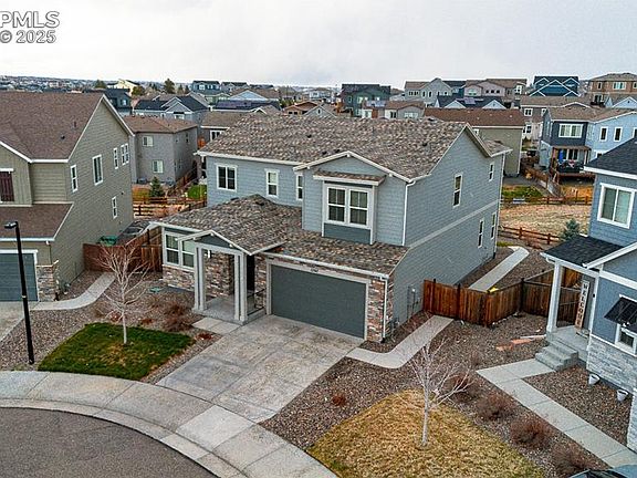 Welcome home to this spacious, stunning home located in the highly sought after Terrain Neighborhood in Castle Rock. You will be blown away by the impressive layout this home has to offer! When you walk in, you are greeted by hardwood floors in the foyer. The front room can be used as a sitting room, or formal dining room. Past the entryway is a massive gourmet kitchen with stainless steel appliances, double oven, gas cooktop range, granite island with seating and ample counter space throughout. There is an eat-in dining space near the kitchen with a 20 foot tall cathedral ceiling, making the space feel bright and open. The kitchen opens up to an oversized living room with a gas fireplace, and lots of windows that let in natural light making the space feel warm and cozy. Past the fireplace is an office space and half bathroom that rounds out the main living area perfectly. Upstairs, the expansive primary bedroom has beautiful coffered ceilings making the room feel elegant and serene. The primary ensuite has an elegant spa-like feel with two vanities, a large soaker tub, walk-in shower with tile and glass surround and walk-in closet. There are three additional bedrooms upstairs; the first bedroom has a private bathroom ensuite. The other two bedrooms are connected by a jack-and-jill bathroom that has a private shower area that is separate from the vanity area. The upper level is finished off with a generous sized laundry room conveniently located near all of the bedroom. This incredible property also has an unfinished basement ready for the new owners to add their own touch! The exterior of this property makes it truly special with a covered patio area, large grass area and fully fenced in yard all backing to open space! The Terrain Neighborhood is nestled just east of downtown Castle Rock and located near I-25, with an easy commute to DTC and all the south metro area has to offer. Enjoy two neighborhood pools, parks, trails, a dog park and community events.