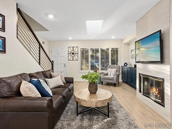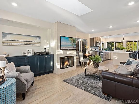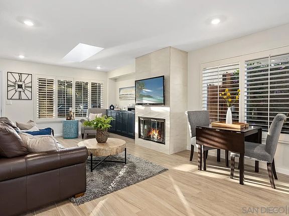 Beautiful twinhome on a lovely quiet street in Cardiff’s renowned Park Place – lives like a detached home with an attached 2 car garage! Tastefully remodeled kitchen, showcasing a modern color scheme, an open layout including a work-open island, quartz countertops, taupe cabinets, and stainless appliances. Bathrooms have also been stylishly remodeled with sleek new cabinets, custom tile work and glass shower enclosures. Additional improvements include new water heater, outdoor firepit, landscaped front and backyard with drought tolerant plants, and fully owned solar panels!