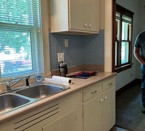 Enclosed front & back porch, large unfinished basement, newer 1 car garage. Cute, comfortable house in quiet neighborhood. May consider a pet.