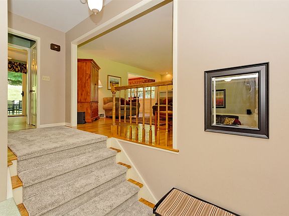 Situated on a quiet 1.4 acre setting & w/in walking distance to Lock 7 & the bike trail sits this beautiful Colonial. HW flrs throughout. Formal LR features recessed lighting, wood burning FP, & built in shelving. Formal DR w/ wainscoting. Eat in kitchen features oak cabinets & sky-light leading out sliders to a composite deck w/ 3 season porch overlooking forever wild. Master suite features "wow" factor updated (25K) marble full bath. Large family room leads to 1st floor office & laundry area. Great porch!